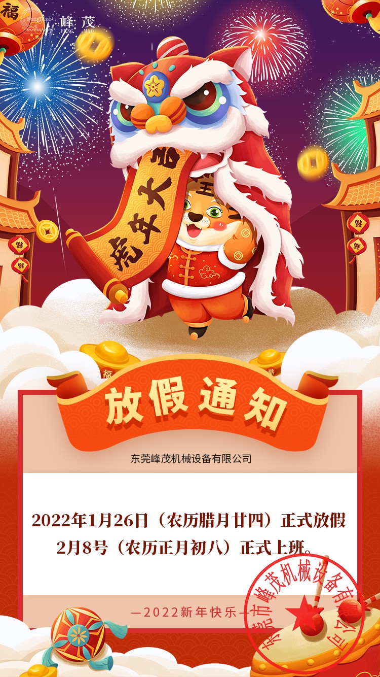 峰茂機械設備有限公司2022春節放假通知: